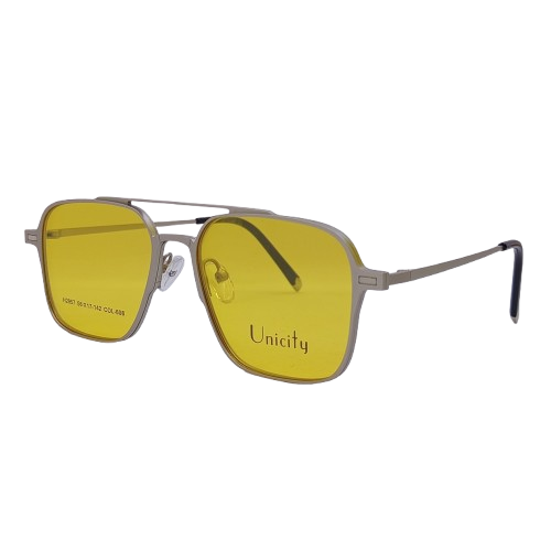 Cuatro lentes en uno, al armazón con tu graduación le agregas los clips para protegerte del sol y con el clip amarillo evitas encandilarte con las luces de los autos.