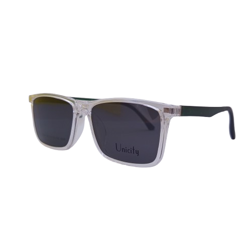 Cuatro lentes en uno, al armazón con tu graduación le agregas los clips para protegerte del sol y con el clip amarillo evitas encandilarte con las luces de los autos.